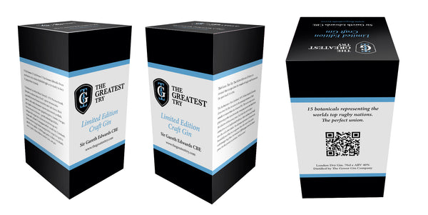 The Greatest Try Gin, individually numbered, presented in a commemorative box and individually autographed by Sir Gareth Edwards.
